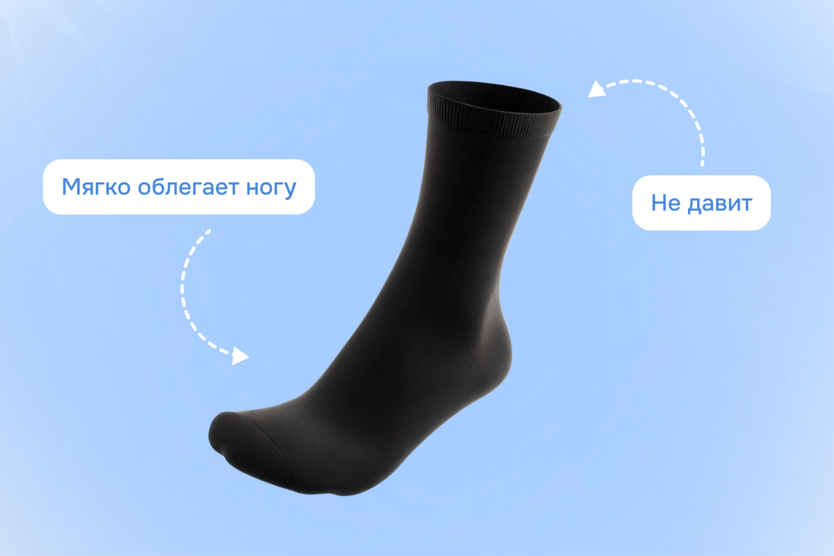 - Эластичность и свобода движений. Носки отлично тянутся, принимая форму стопы, но при этом не теряют своей формы даже после множества стирок.