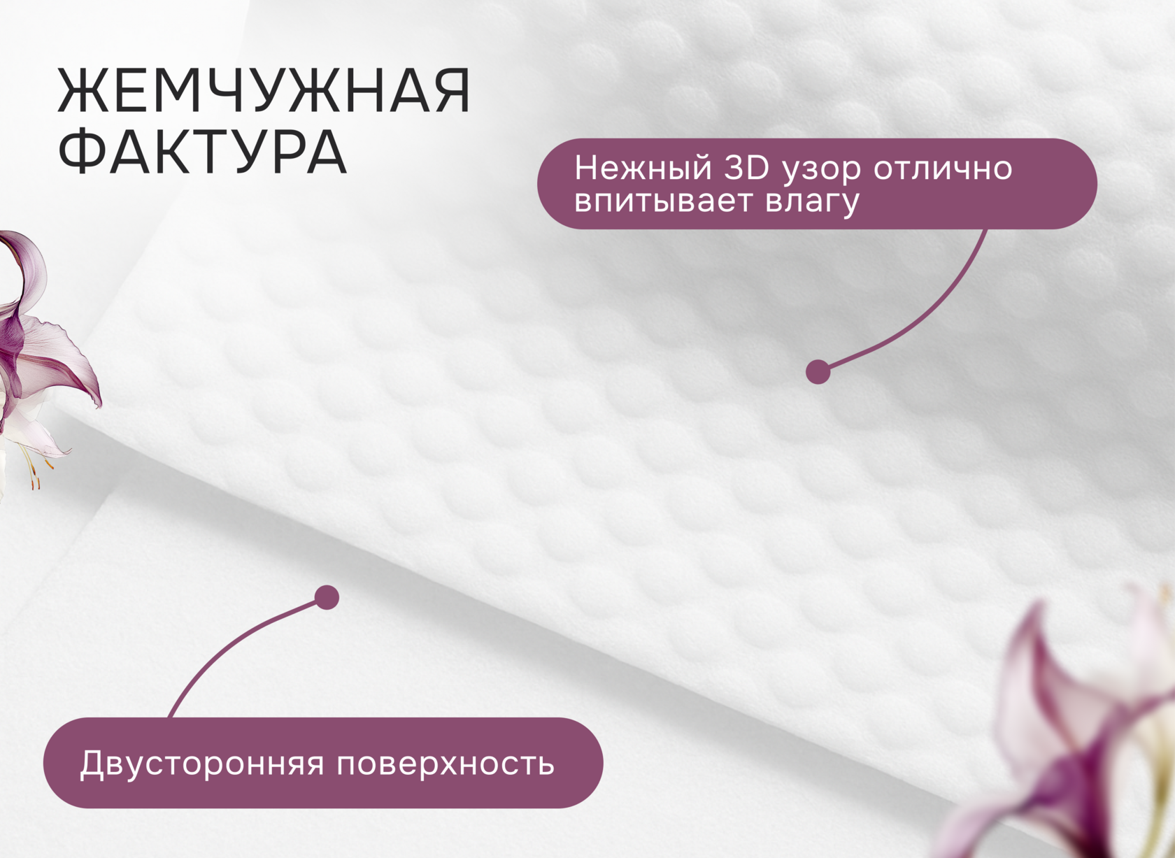 - Деликатный уход — мягкая поверхность без ворсинок подходит даже для самой чувствительной кожи лица.