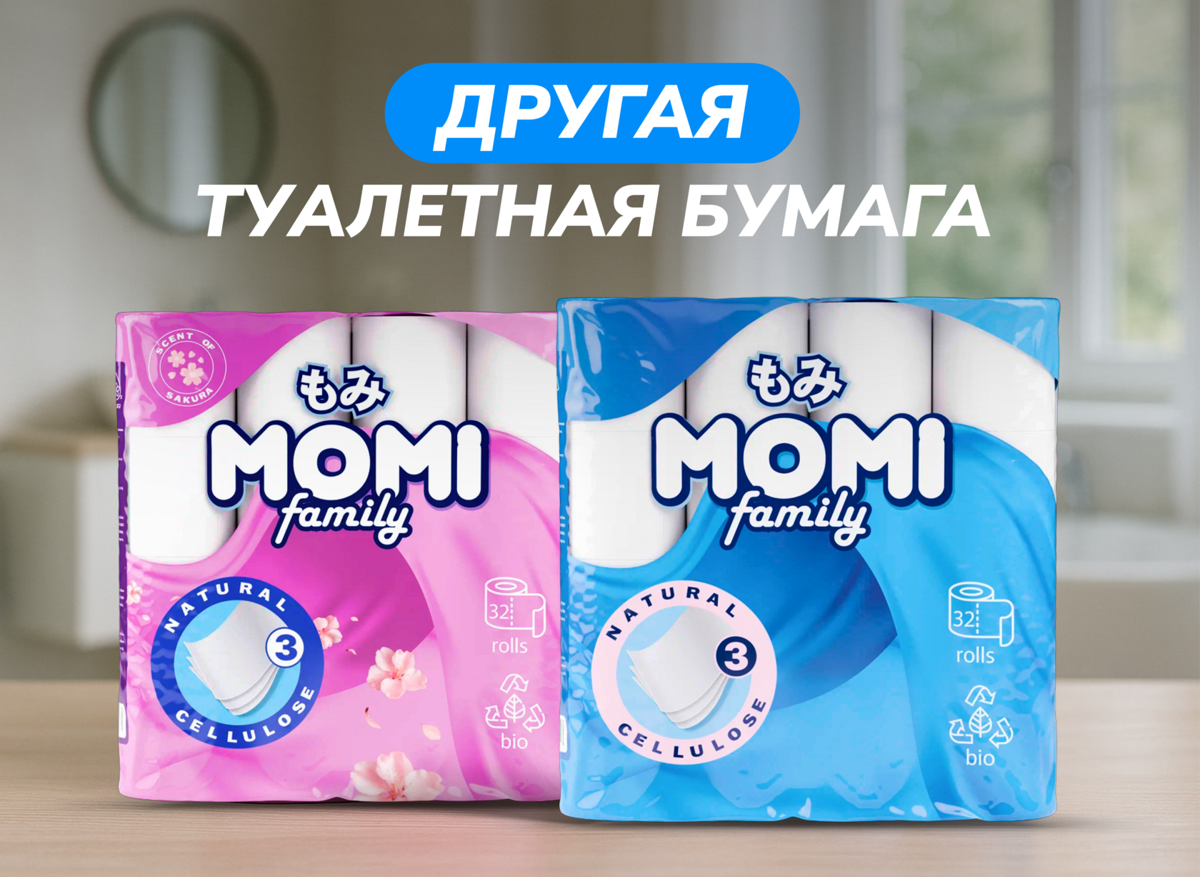 Туалетная бумага MOMI Family — это результат внимания к деталям и заботы о комфорте. Потому что даже самое простое может быть по-настоящему качественным.